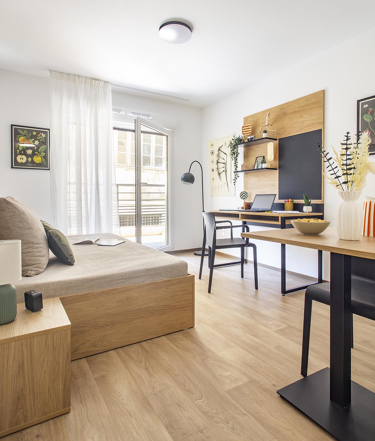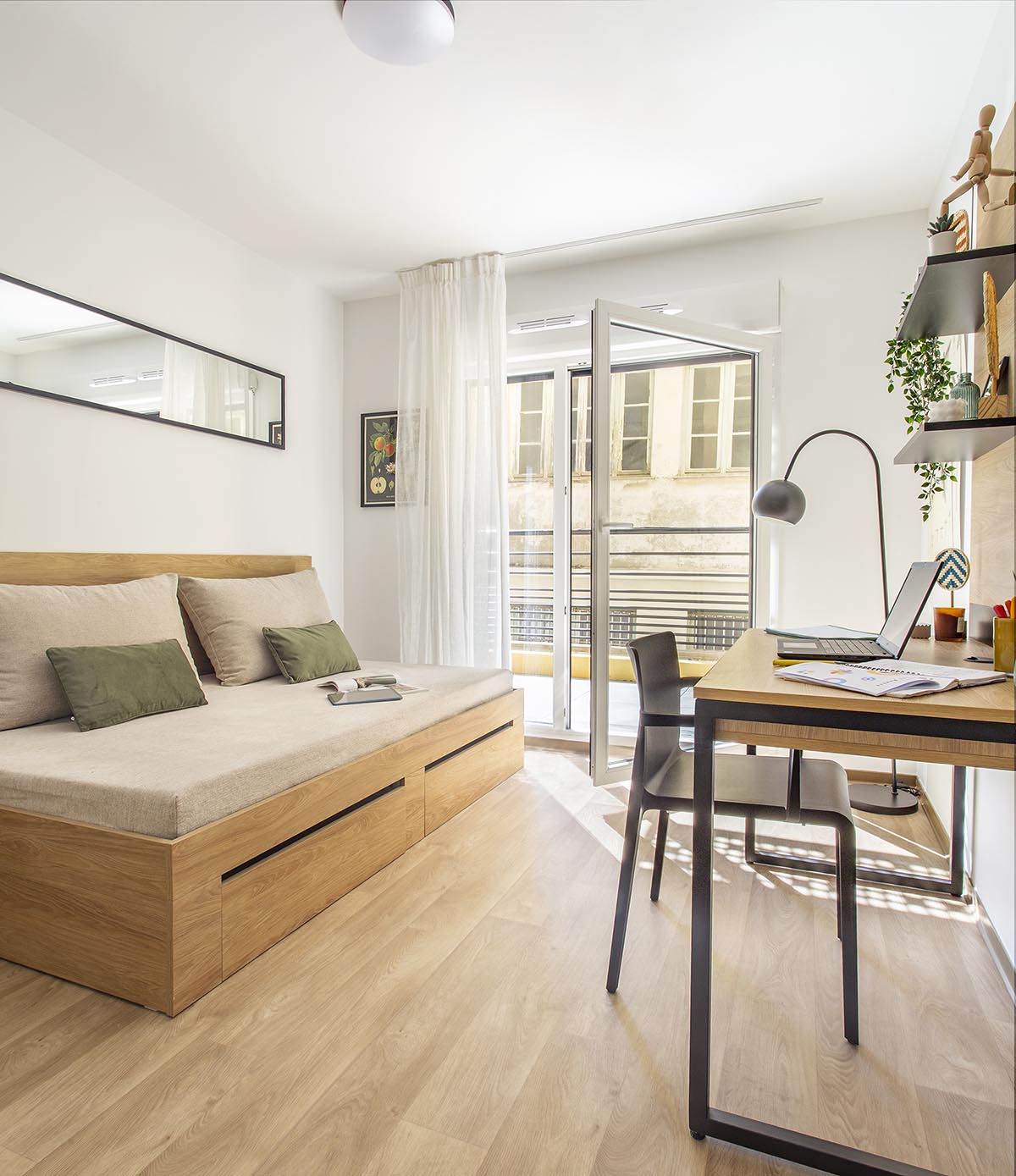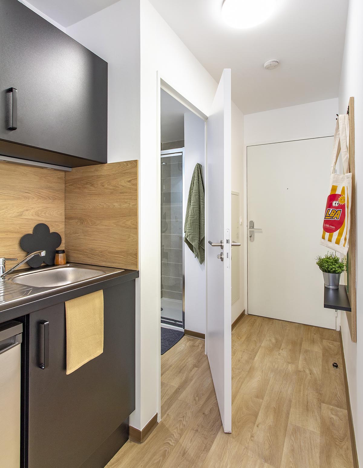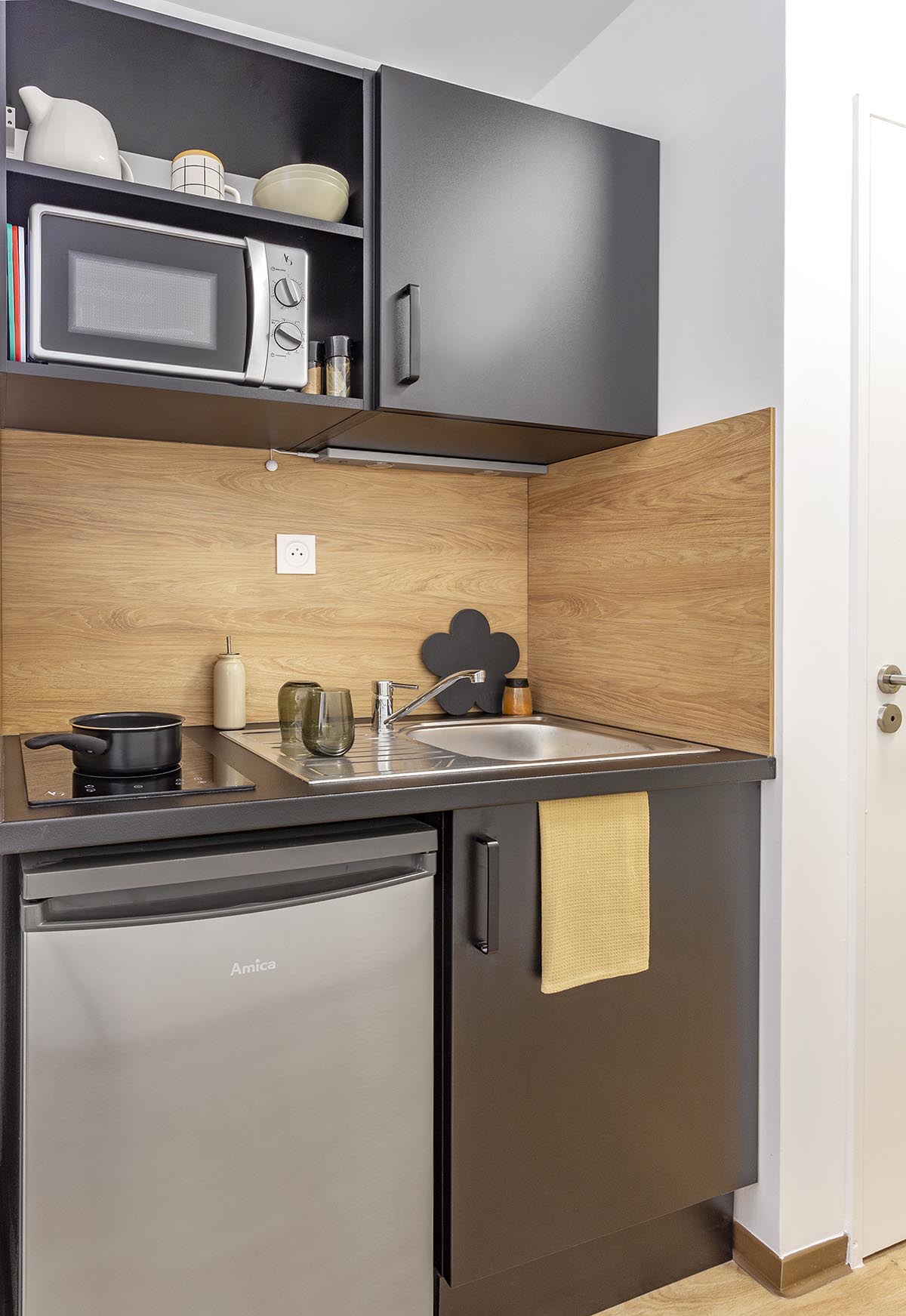 Les studios de la résidence sont tous équipés d’une cuisine avec plaques de cuisson, rangements et réfrigérateur, d’une salle de bain équipée, d’un bureau et d’un lit. Bien agencés, meublés avec goût.